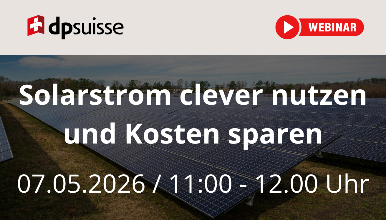 dpsuisse veranstaltet am 7. Mai 2026 von 11.00 bis 12.00 Uhr ein Webinar zu LEG und vZEV. Auch VSD-Mitglieder sind herzlich eingeladen, teilzunehmen und mehr über die neuen Möglichkeiten der lokalen Stromnutzung zu erfahren.